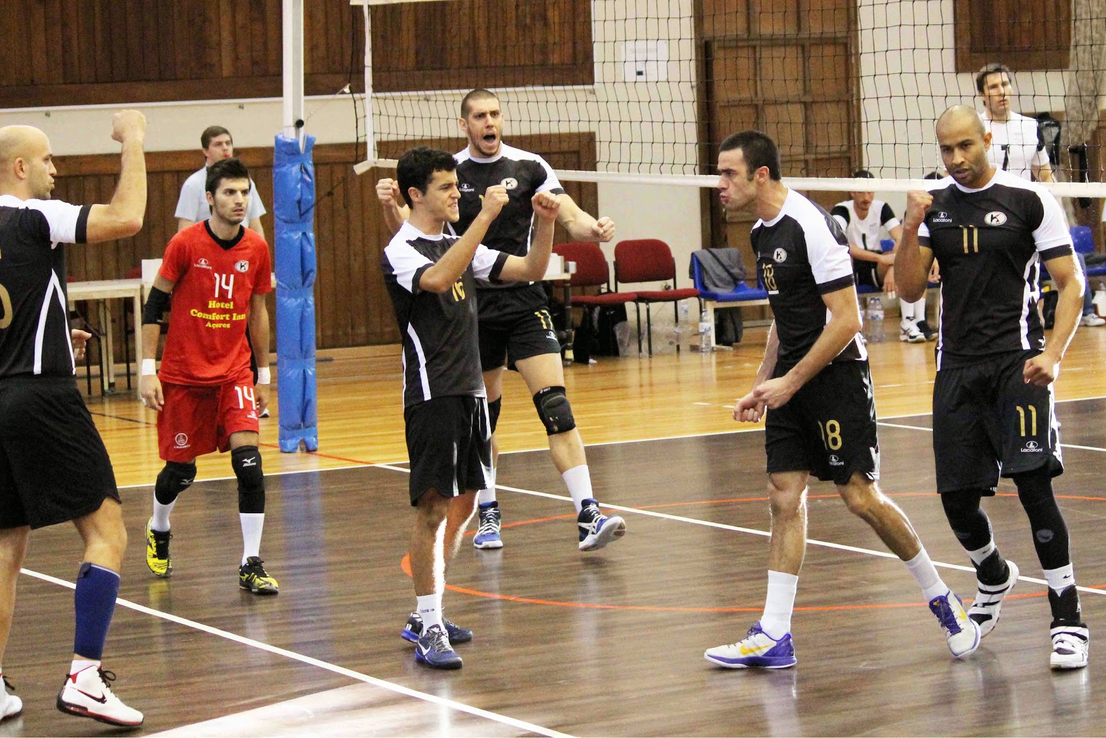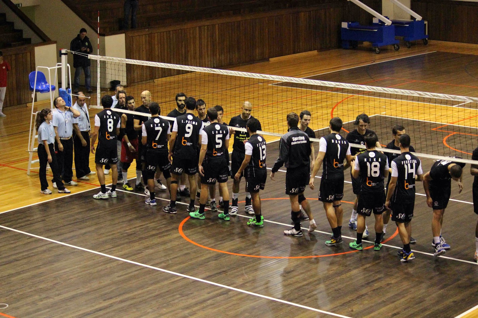 e no 2º time-out, o placar registava 11-14 a favor dos visitantes.
