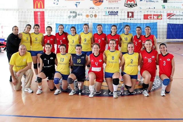 | As equipas de Juvenis do CLUBE K e Internacional Volei Açores |